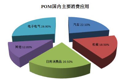 由上述两图表可知,我国消费的POM主要以进口POM为主。其原因为在POM消费应用中,电子电器、汽车行业以及机械行业占了67%,而这部分产品主要为高端产品,对制件原料质量要求较高,一般使用杜邦、宝理、三菱等进口品牌。而我国电子、汽车以及机械行业正处于飞速增长阶段,预计以后进口POM将在我国POM消费市场中将占据更大的比例。