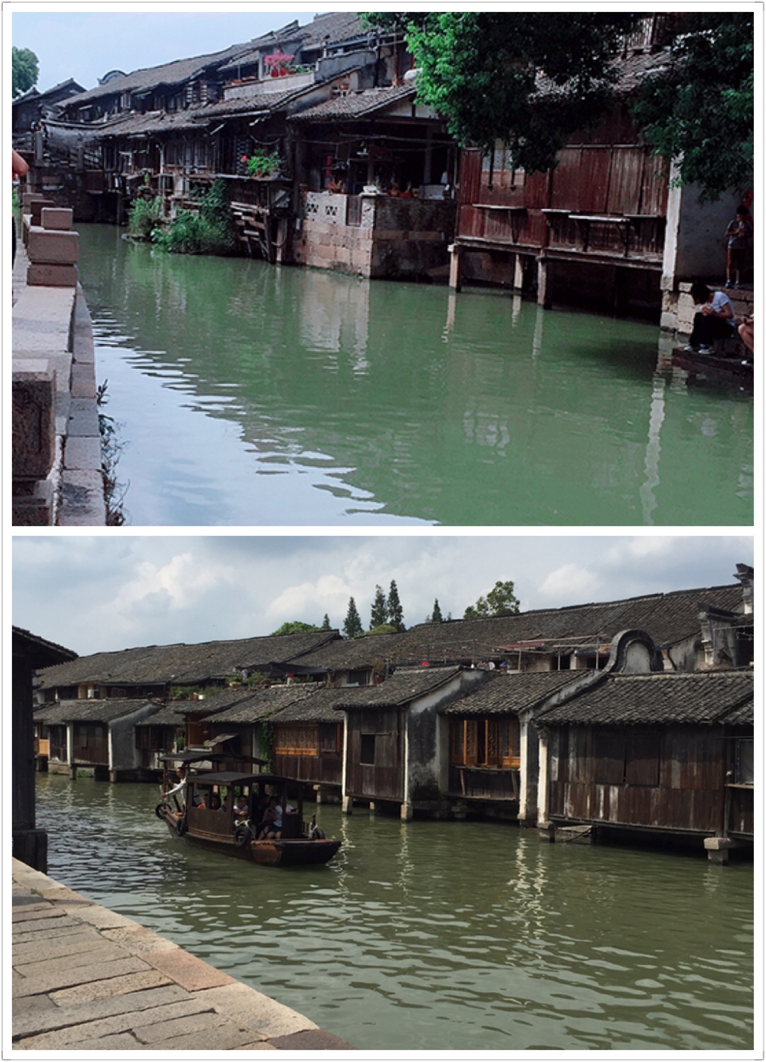 置身于乌镇东栅,看着参差不齐的古宅,青檐灰瓦的江南人家,如绿色缎带般的流水,在小镇中千回百转,乌篷船摇橹载着岁月的悠闲,一切在静谧中让你回味沉淀的岁月。